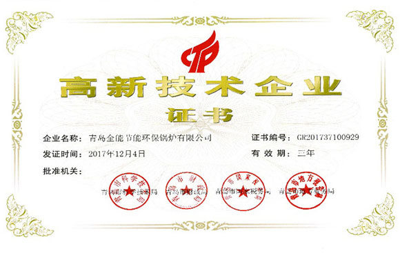 全能節能環保鍋爐子公司獲得高新技術企業證書...2017-12-04